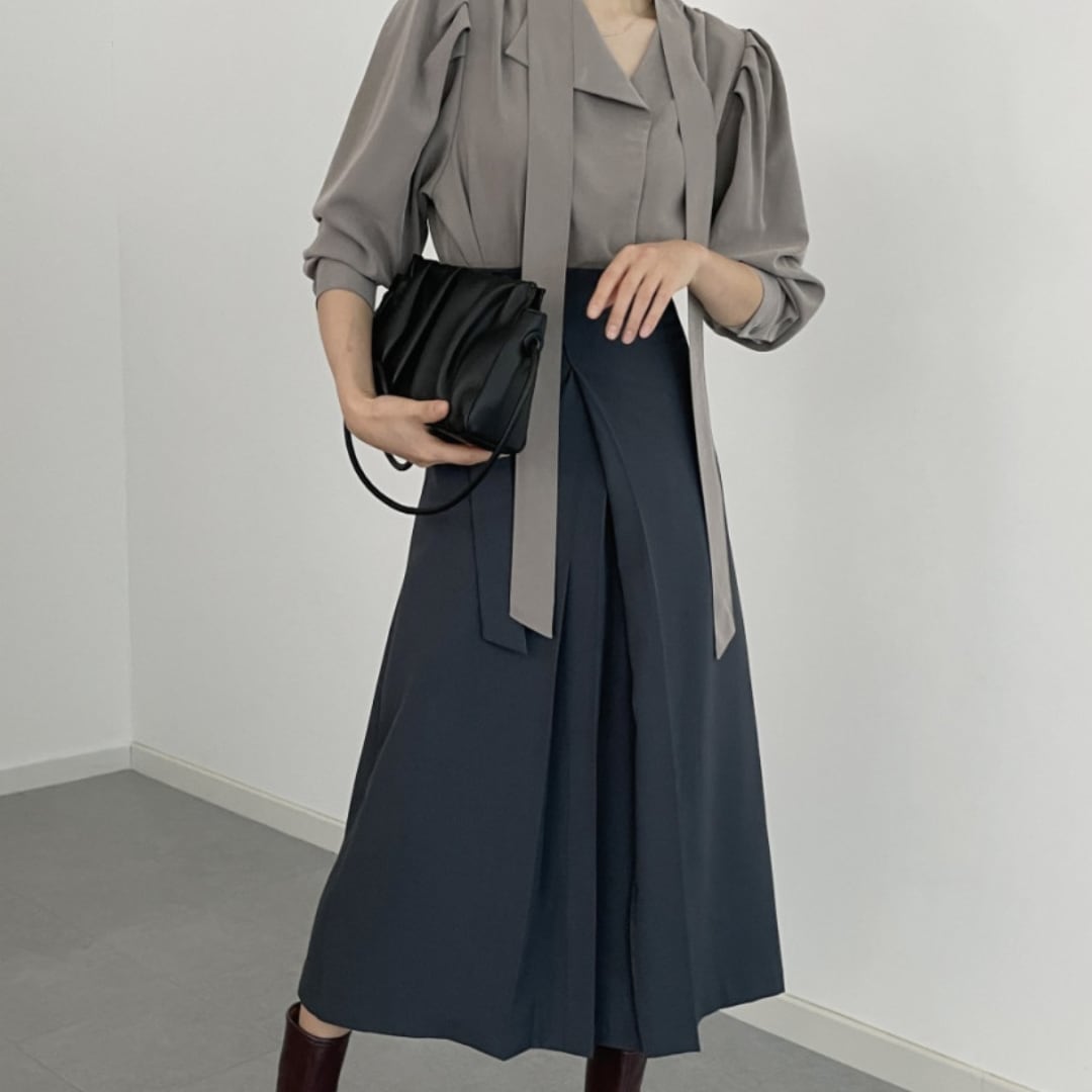 フロントスリットが歩くたびに女性らしい動きを演出し、洗練された印象を与えます