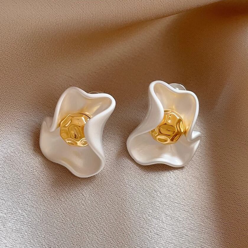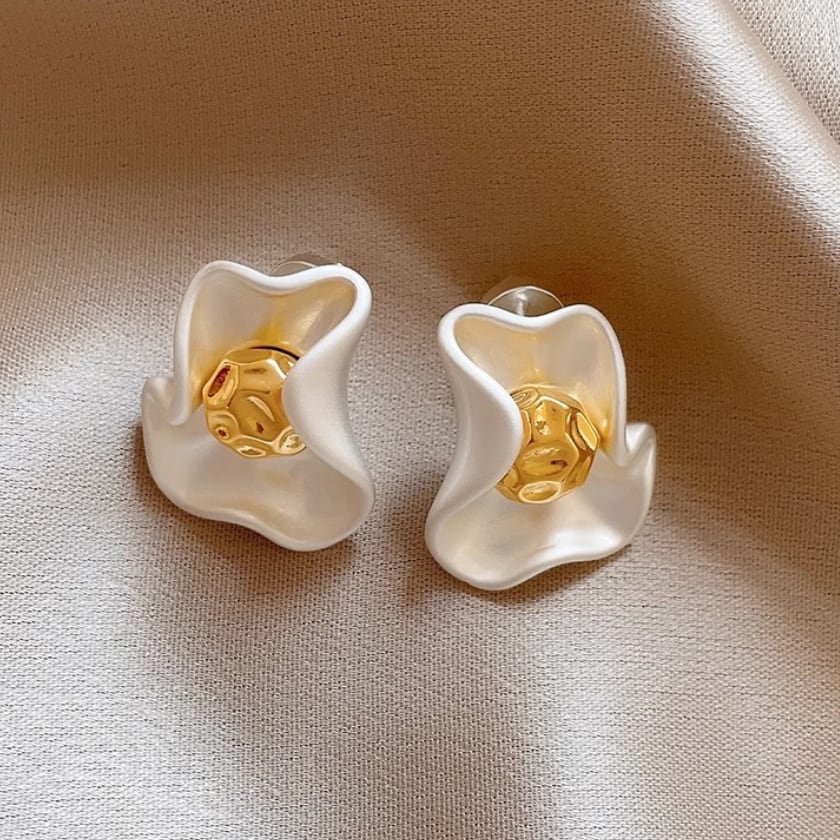 マットな質感と上品なオフホワイトの色合いが魅力のピアス