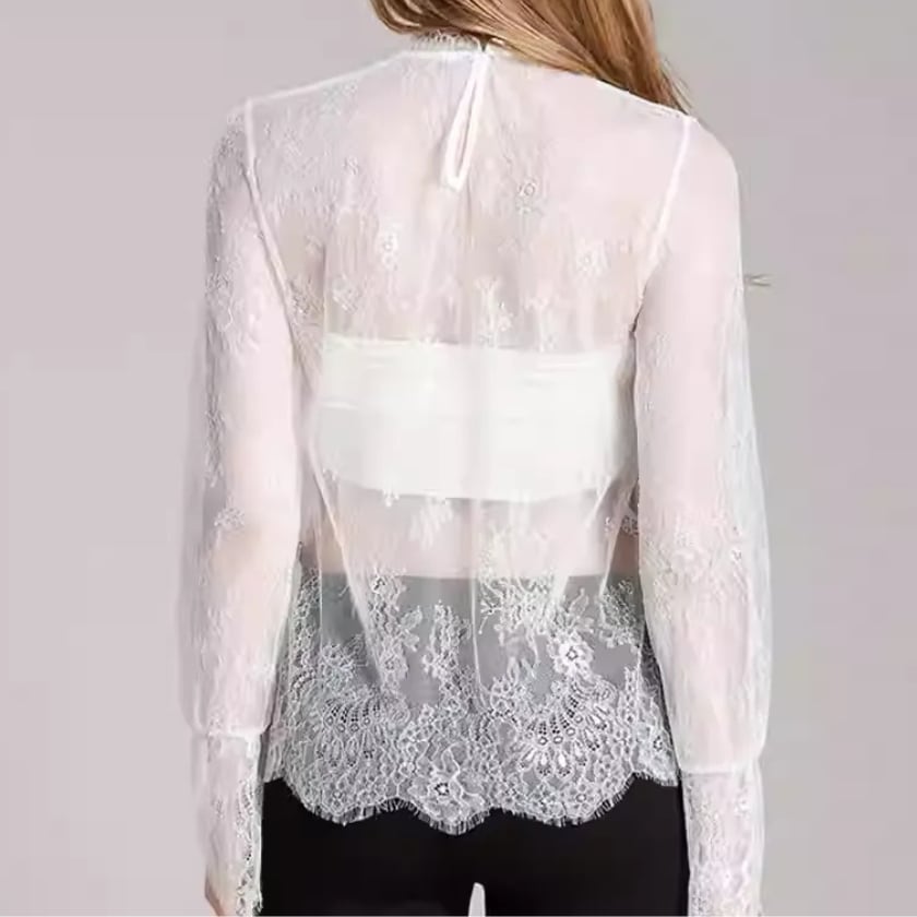 スタンドカラーデザインとベルスリーブが、女性らしい上品さを演出します