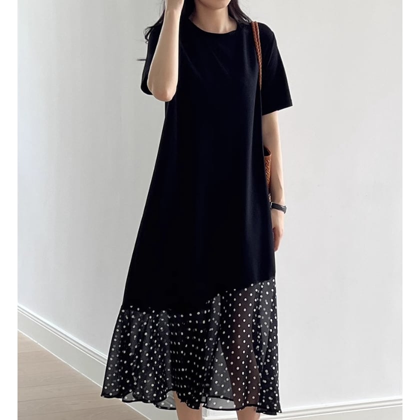 バックリボンワンピース スイッチングドットフレアスカート S0284