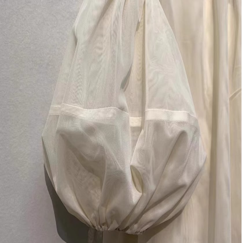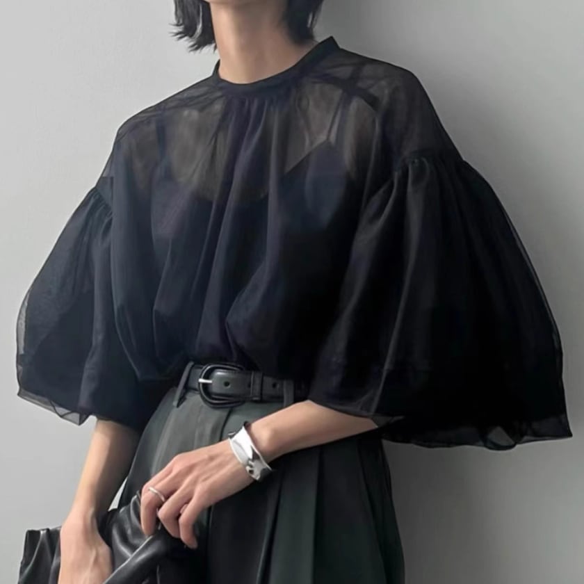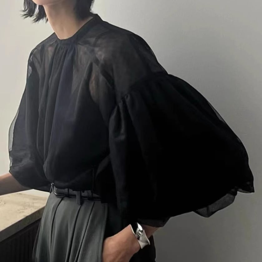 2col.シアー素材 ランタンスリーブハイネックブラウス S0291