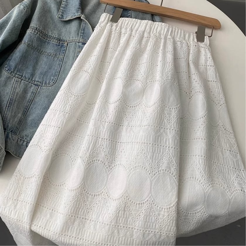 Aラインウエストゴムスカート アイレット刺繍 S0294