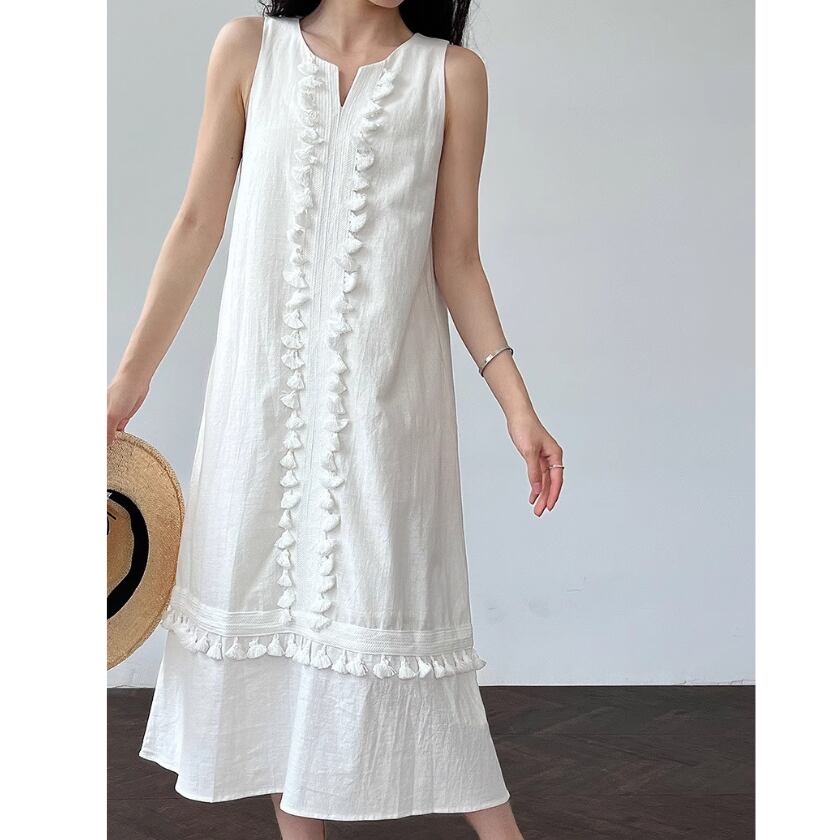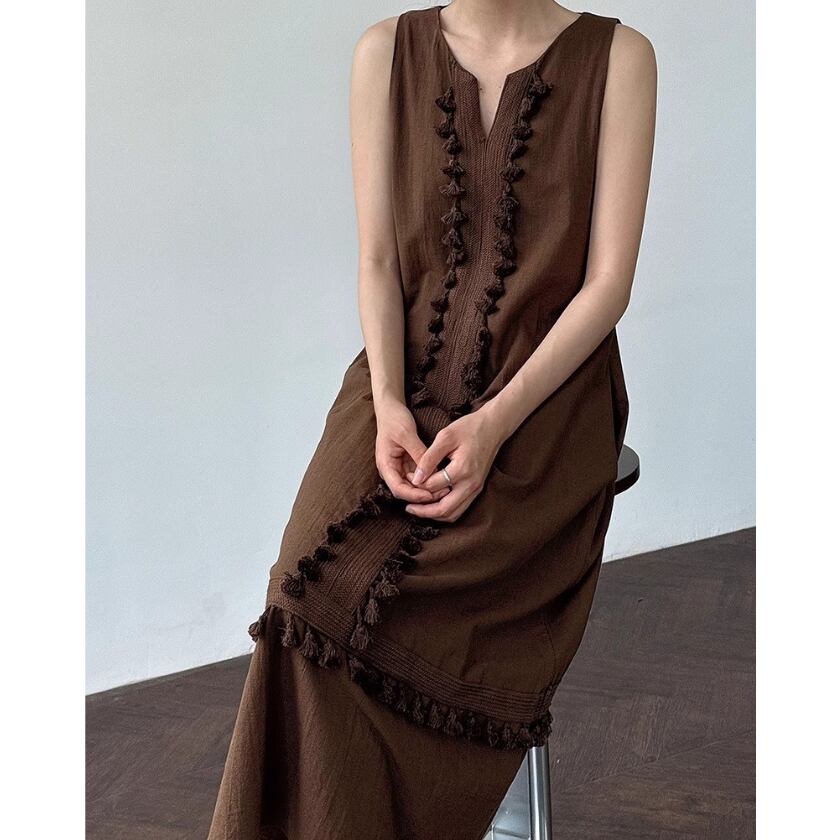 2col.タッセルデザイン ノースリーブワンピース S0298