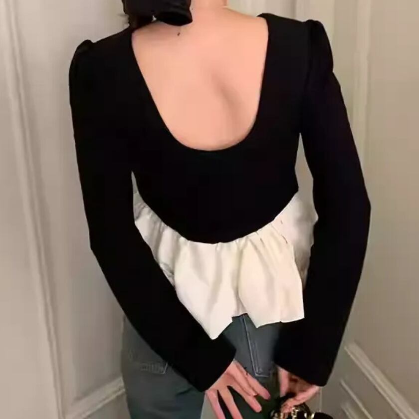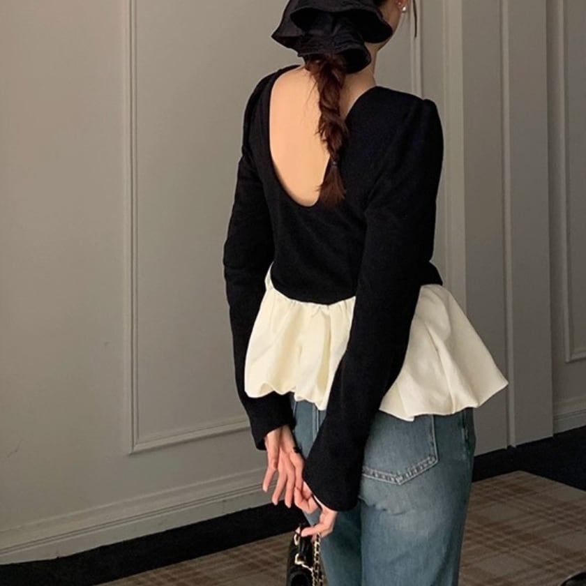 バックオープン レイヤード風デザインカットソー S0305