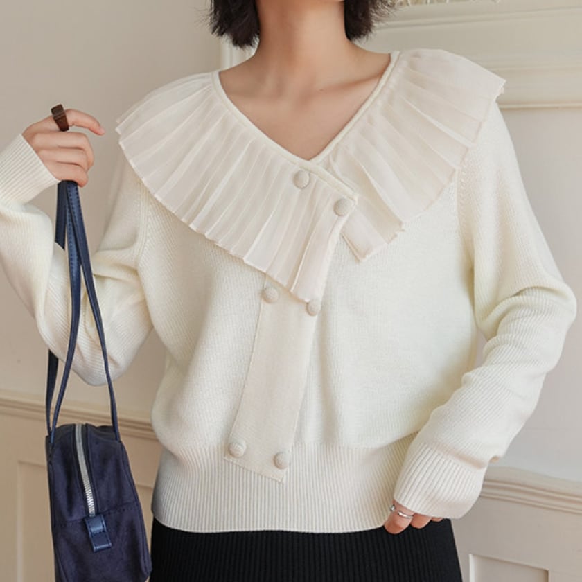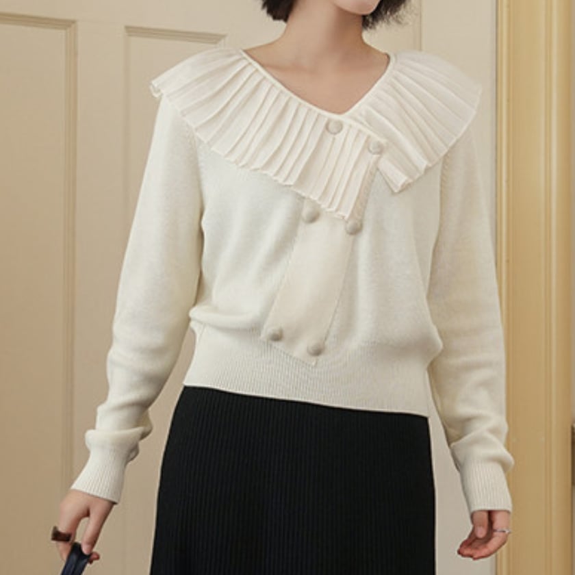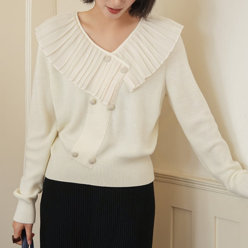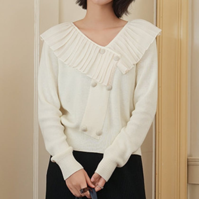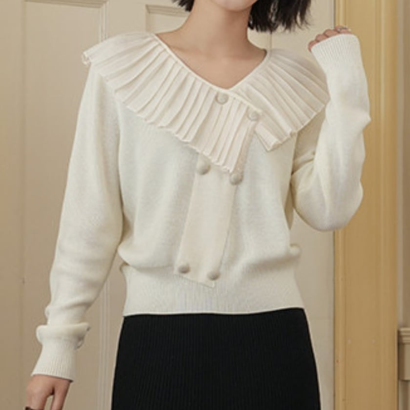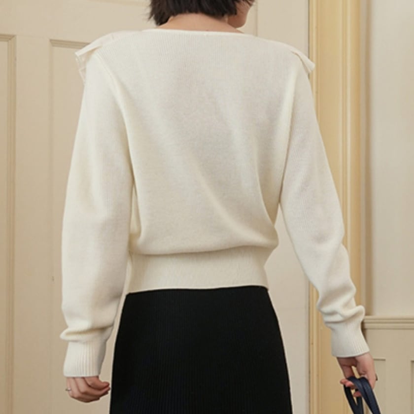 Vネックがデコルテを美しく見せてくれる、エレガントな一着です