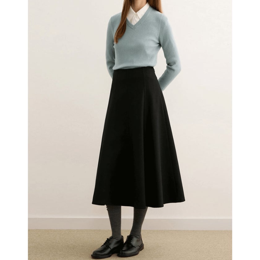 上品なAラインシルエットで、女性らしい印象を与えてくれるスカートです