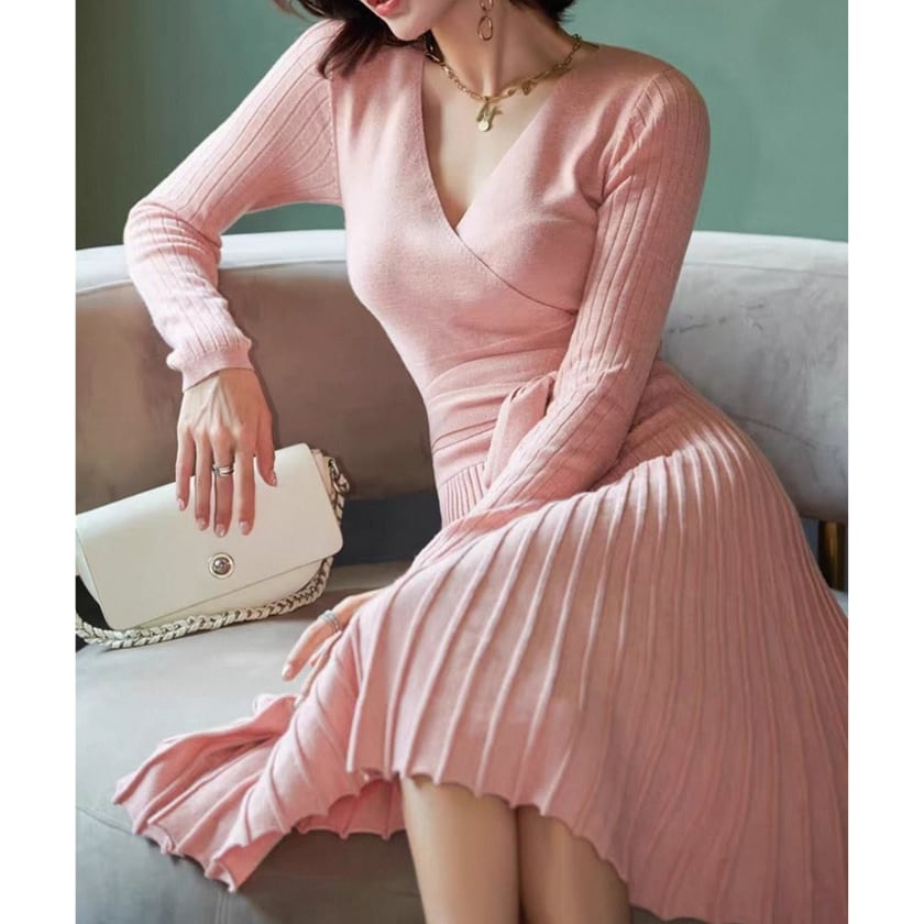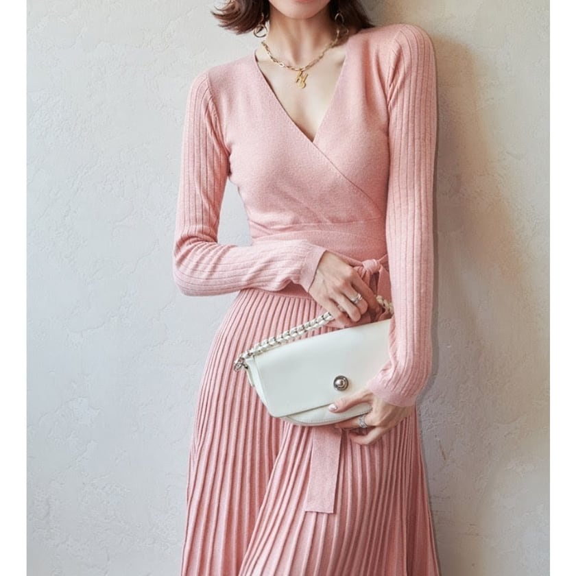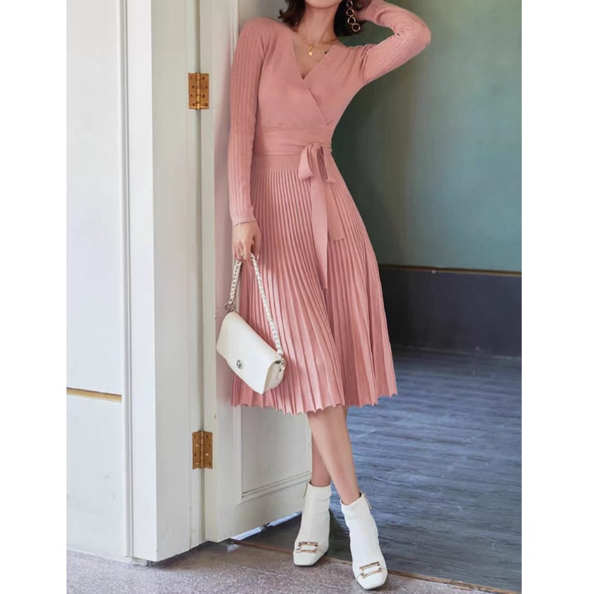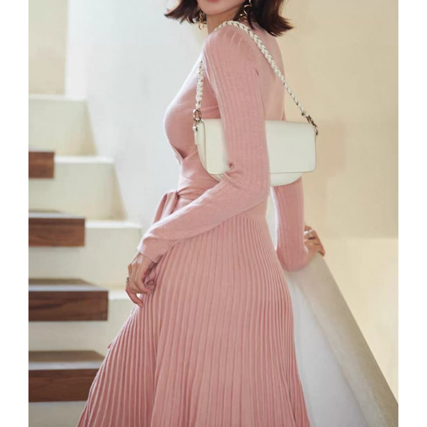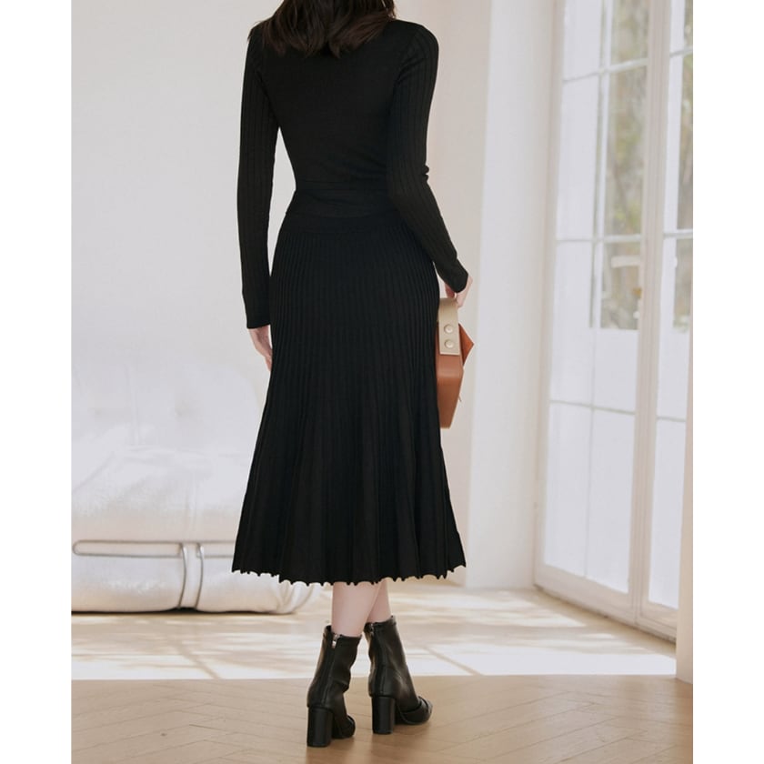 着るだけでスタイルアップが叶う、ニットプリーツワンピース