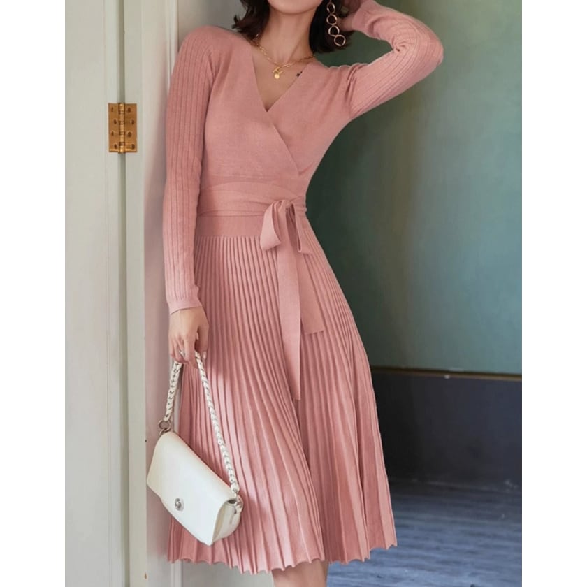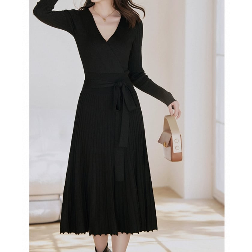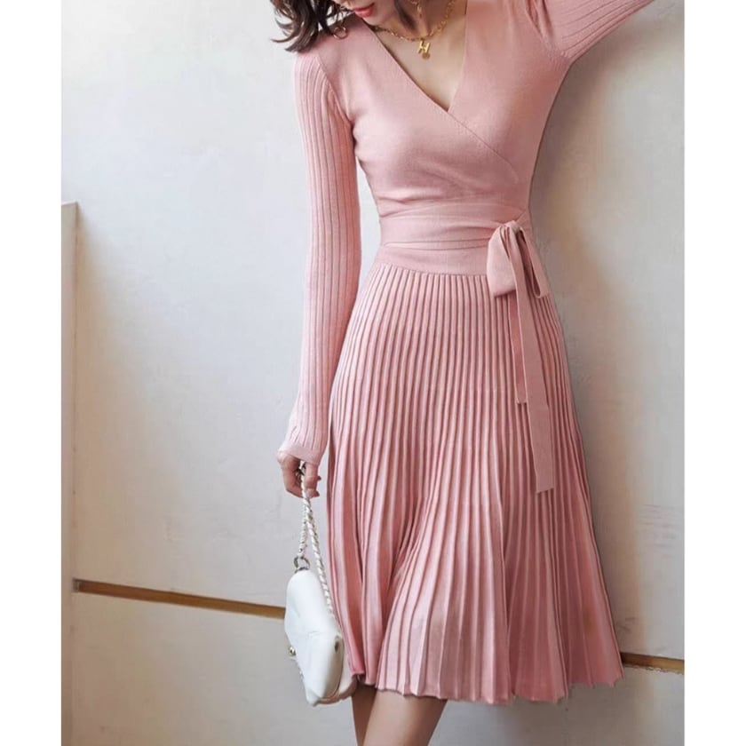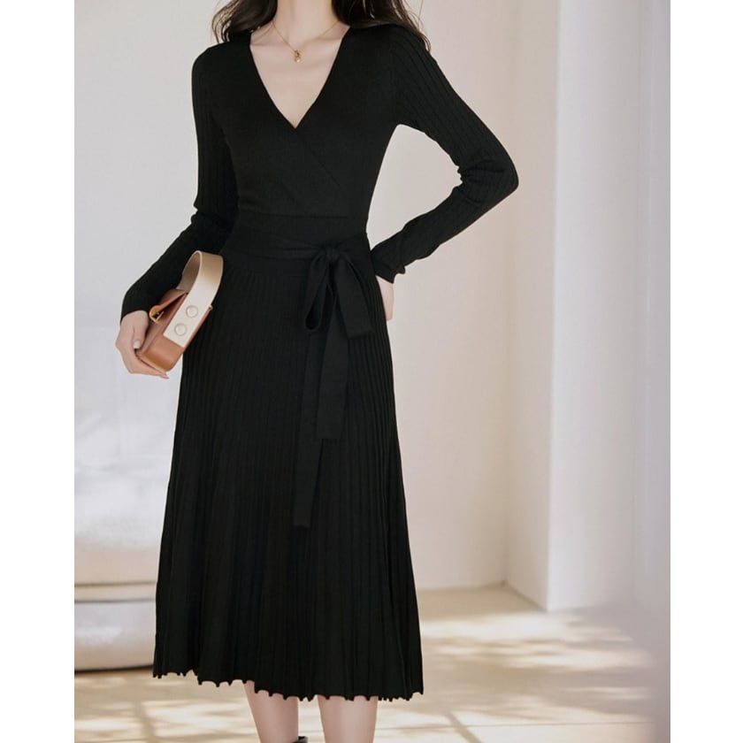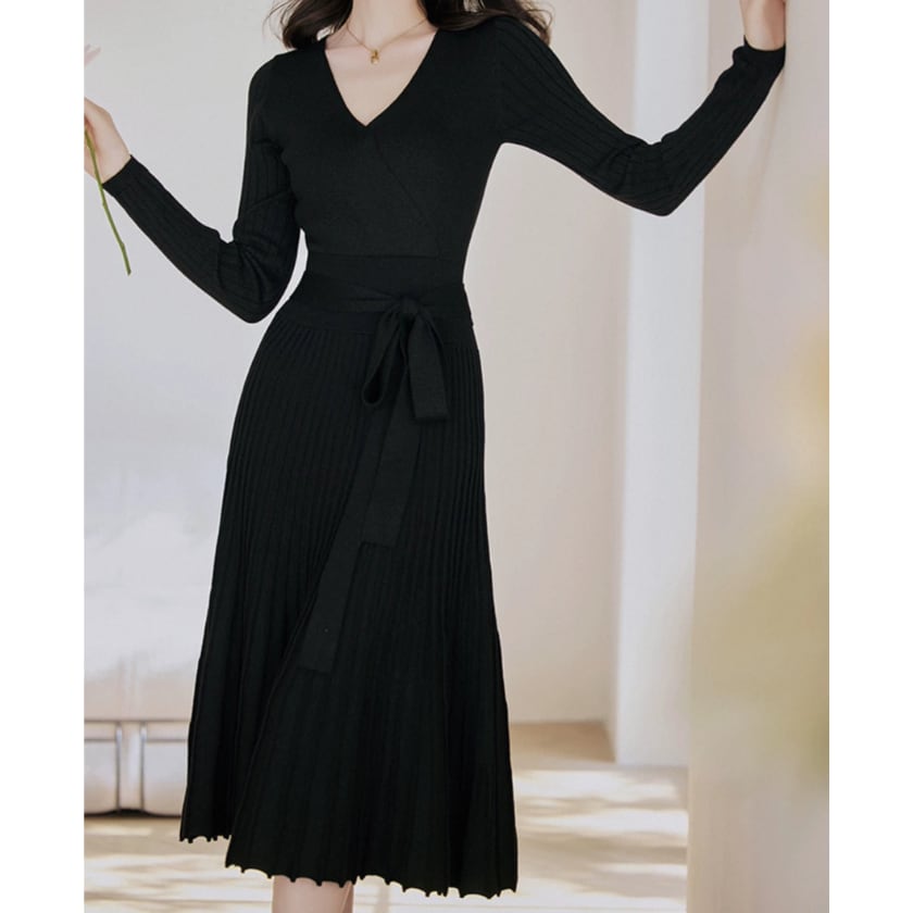 着るだけでスタイルアップが叶う、ニットプリーツワンピース
