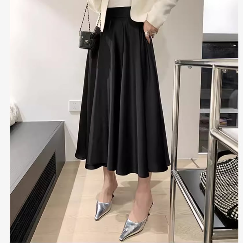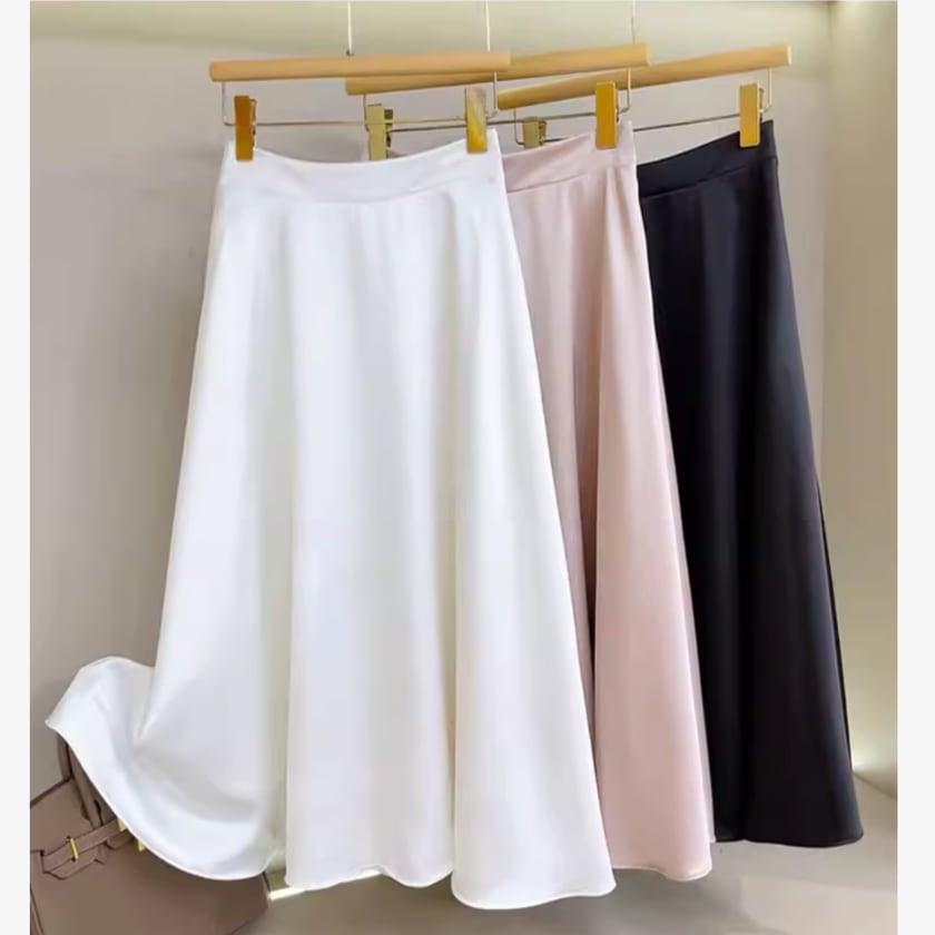 3col.Aラインスカート サテンシャンパンカラー S0341