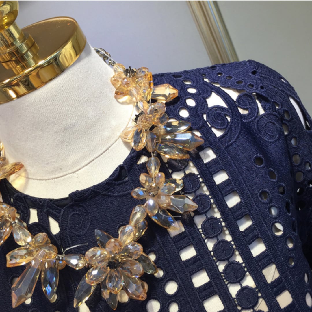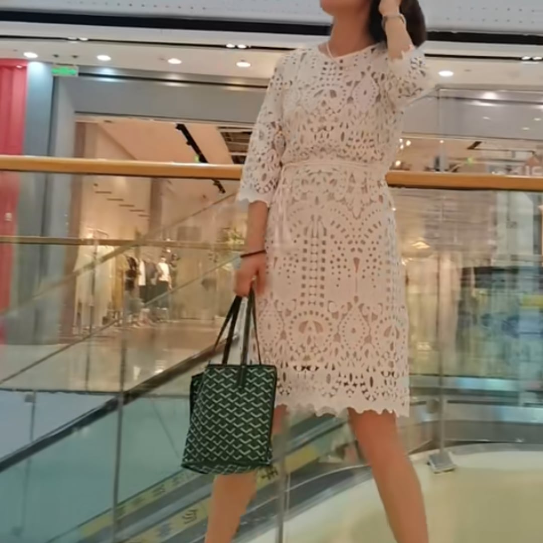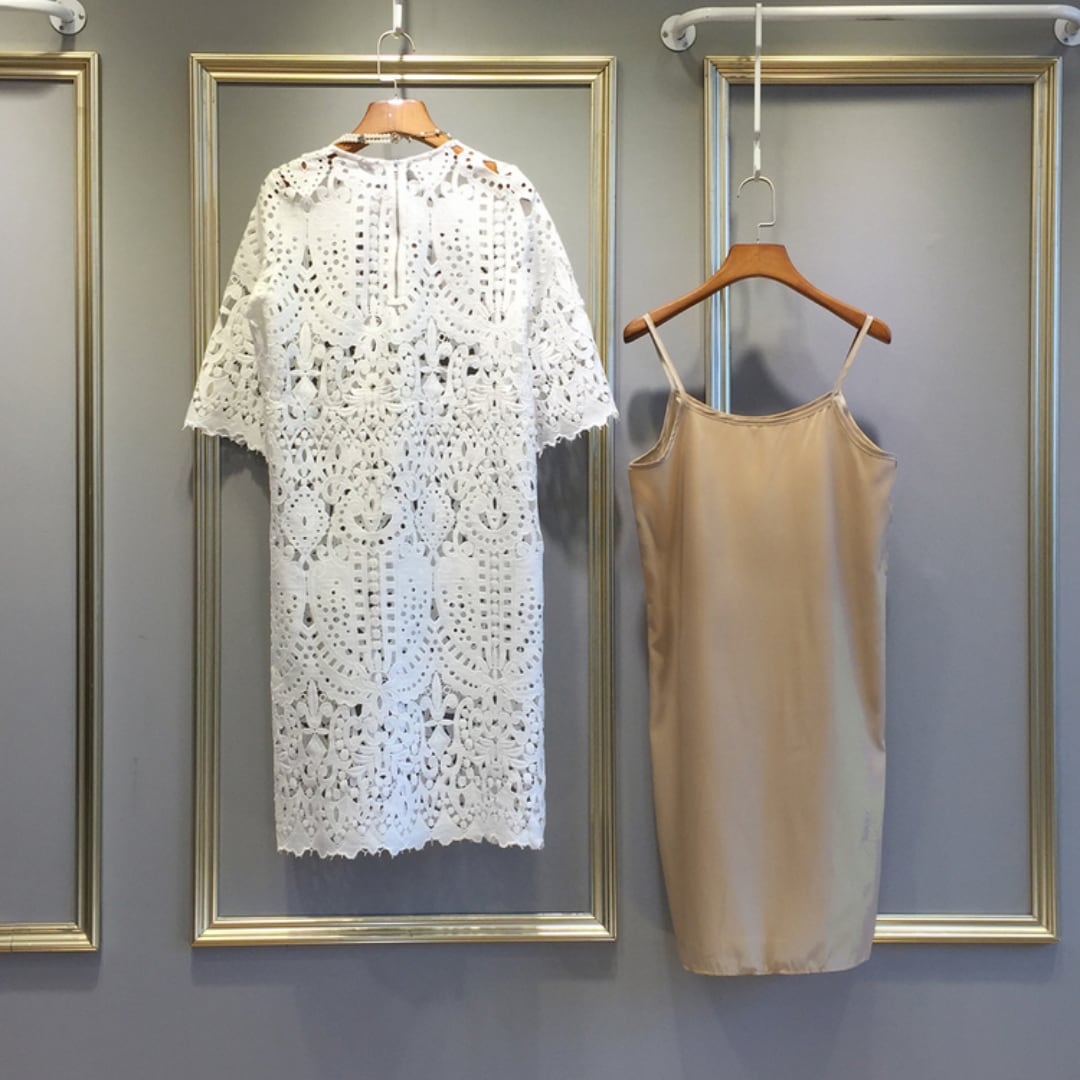 2col.レースワンピース 七分袖 ウエストマーク S0022