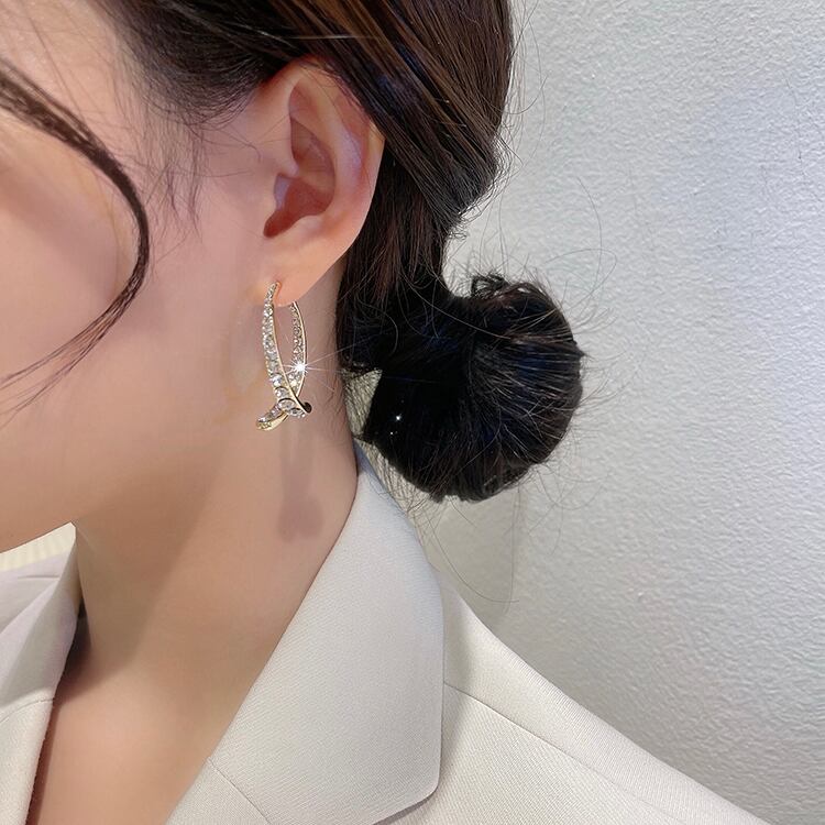 カーブした形状が耳元を美しく彩り、女性らしい輝きを演出します