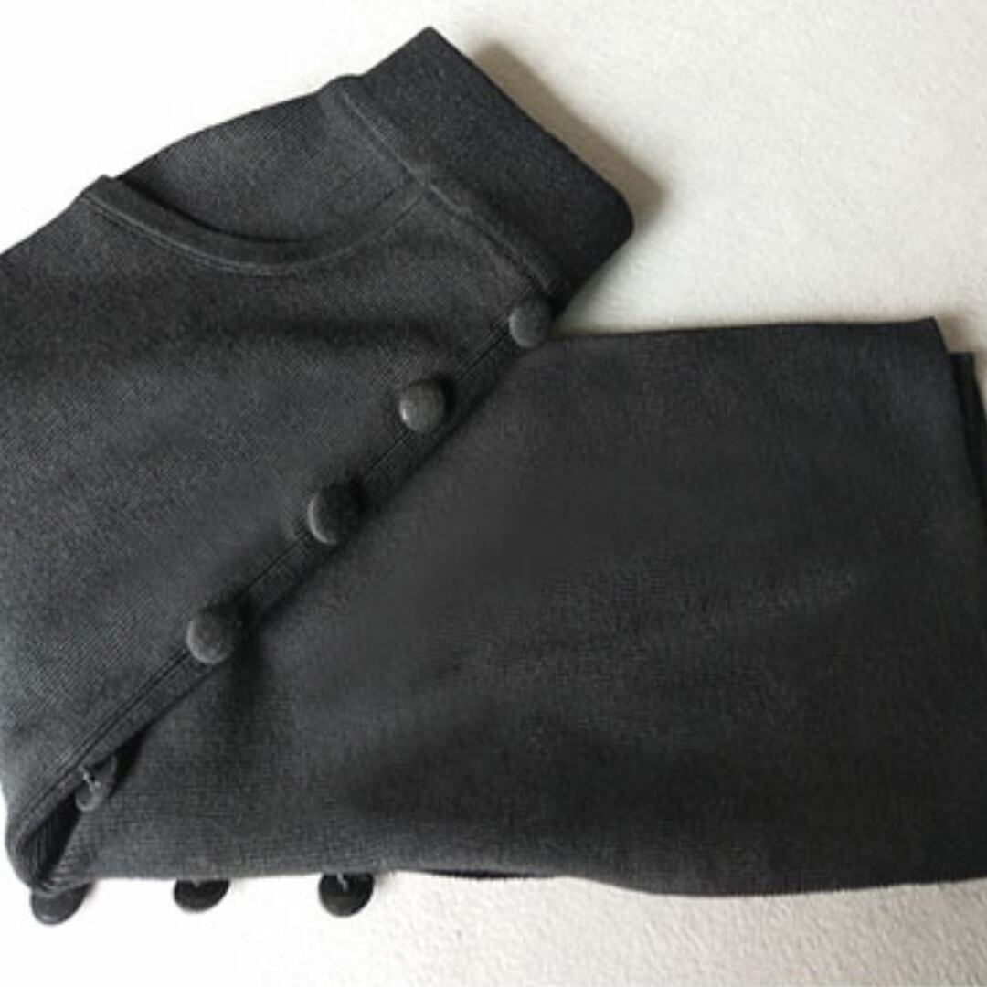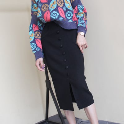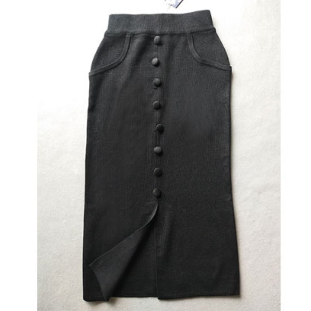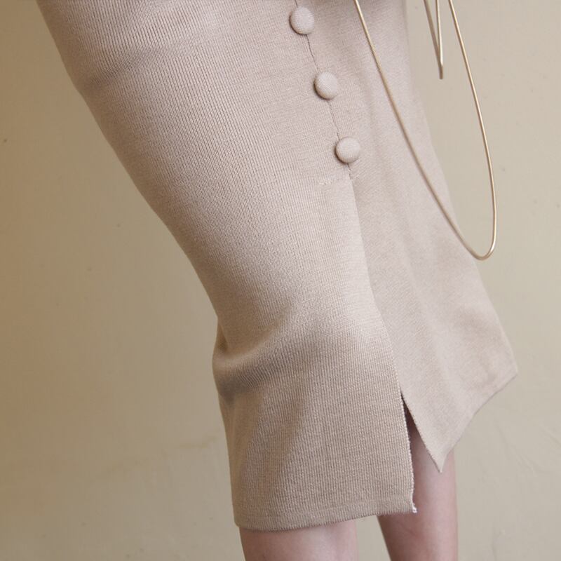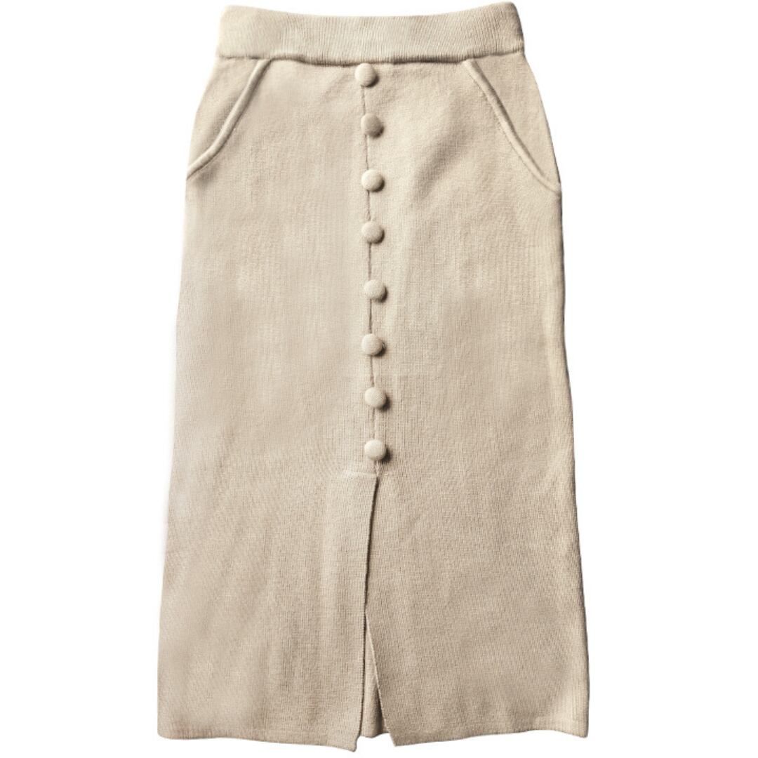 ボタンディテールとスリットがポイントのニットスカート