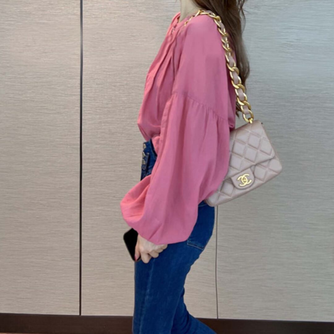 ランタンスリーブとラウンドネックがこの季節にぴったりで、デイリーからオケージョンまで、幅広いシーンで使えます。