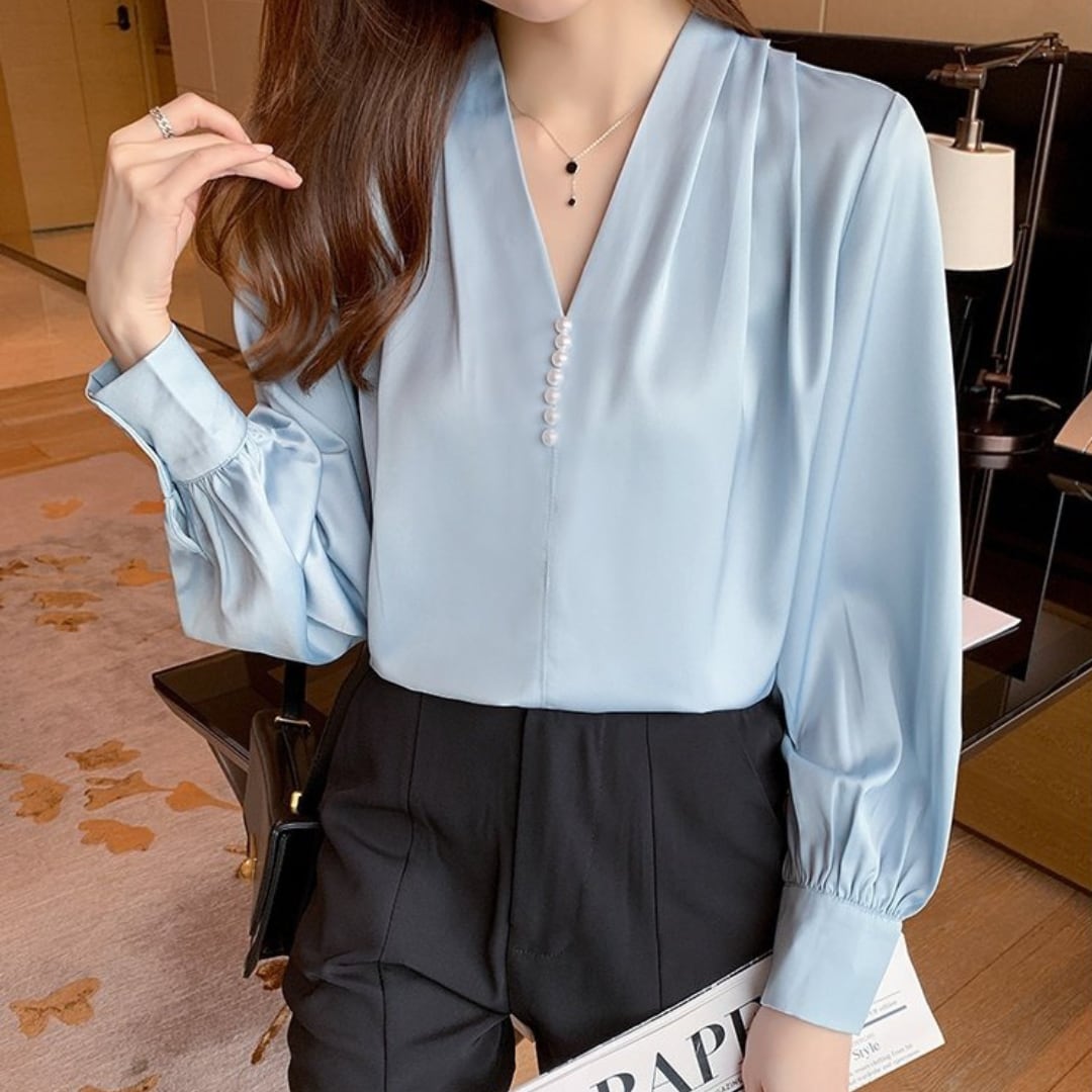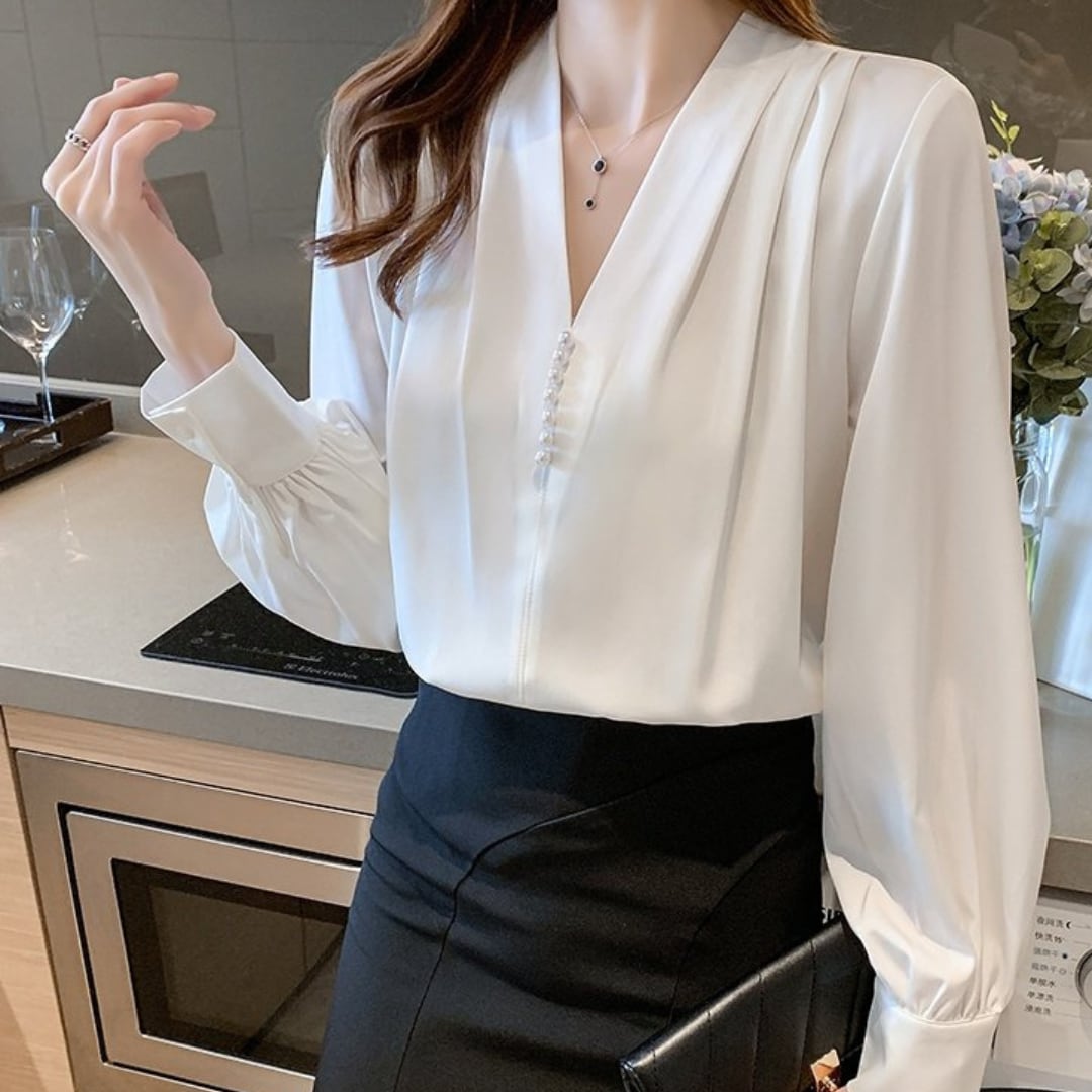 タックの入ったスッキリしたVネックカットソー