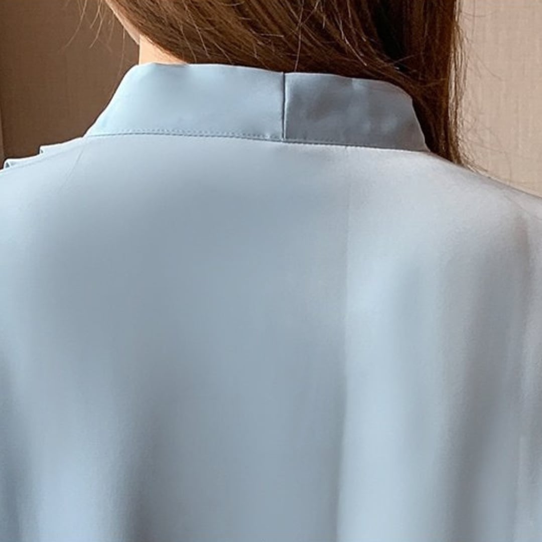 シンプルなデザインながらも、女性らしいシルエットを演出します