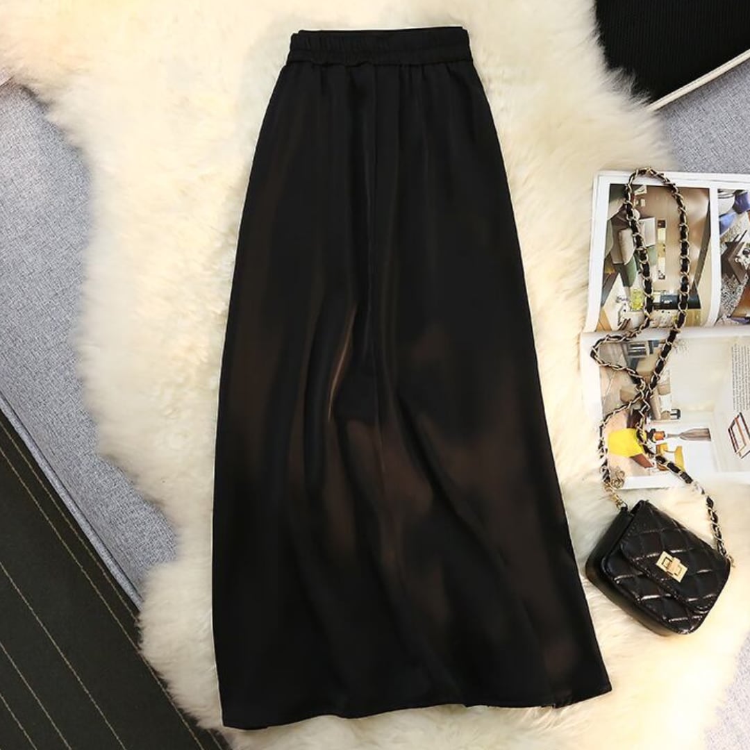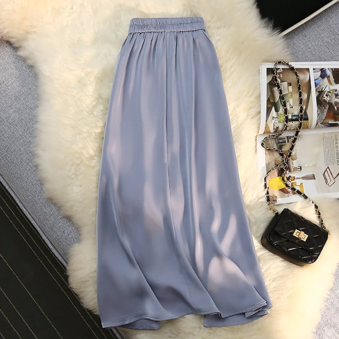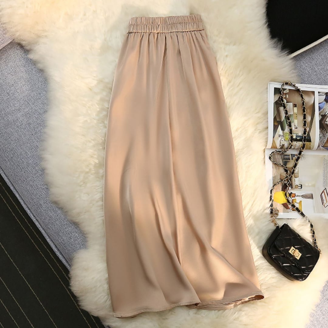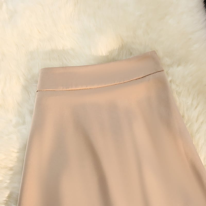 3col.マーメイドAラインスカート ウエストゴム シャンパンカラー S0129
