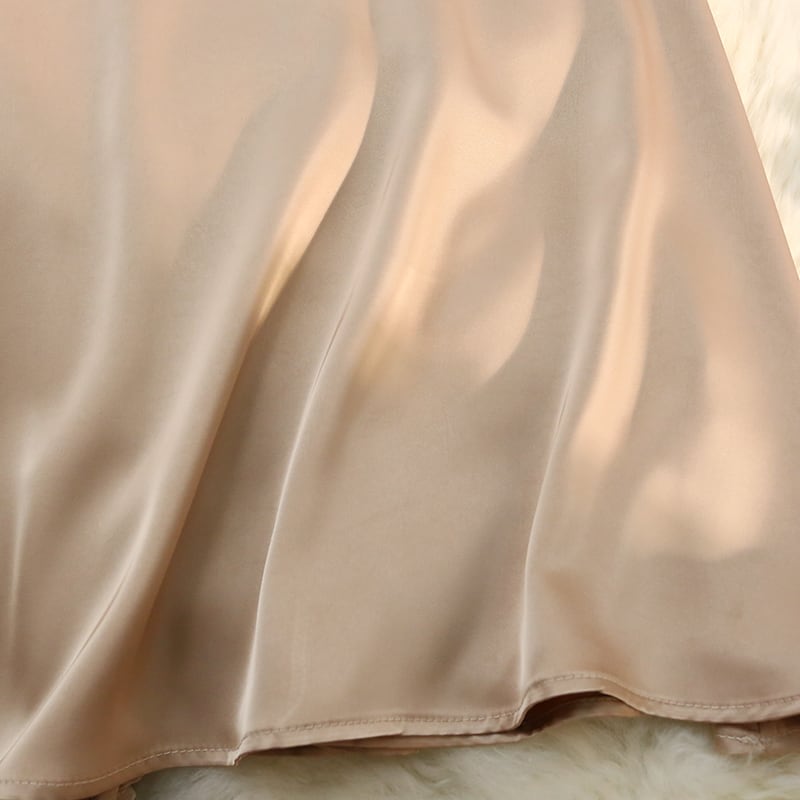 シャンパンカラーのサラッとした生地が優雅な雰囲気があり、特別な場面にもぴったり!