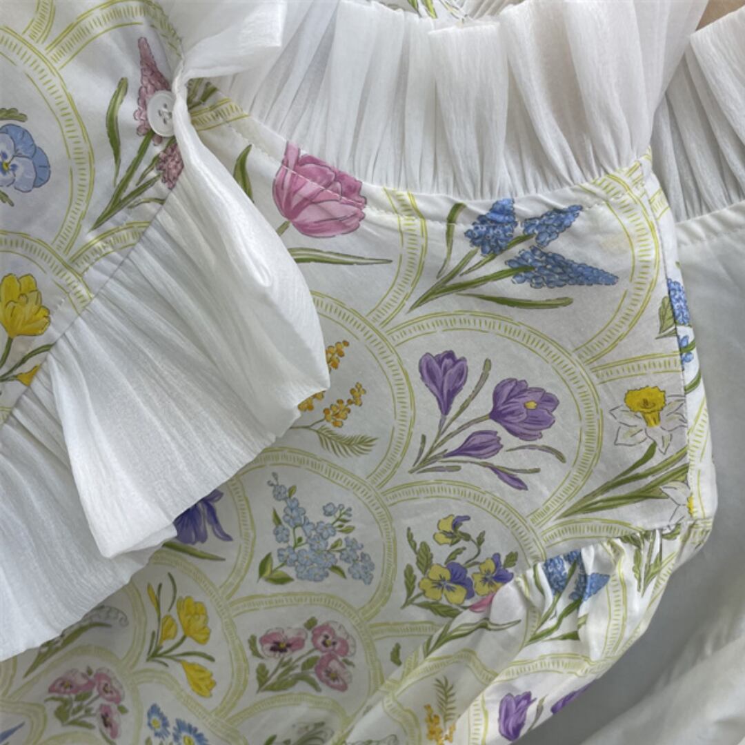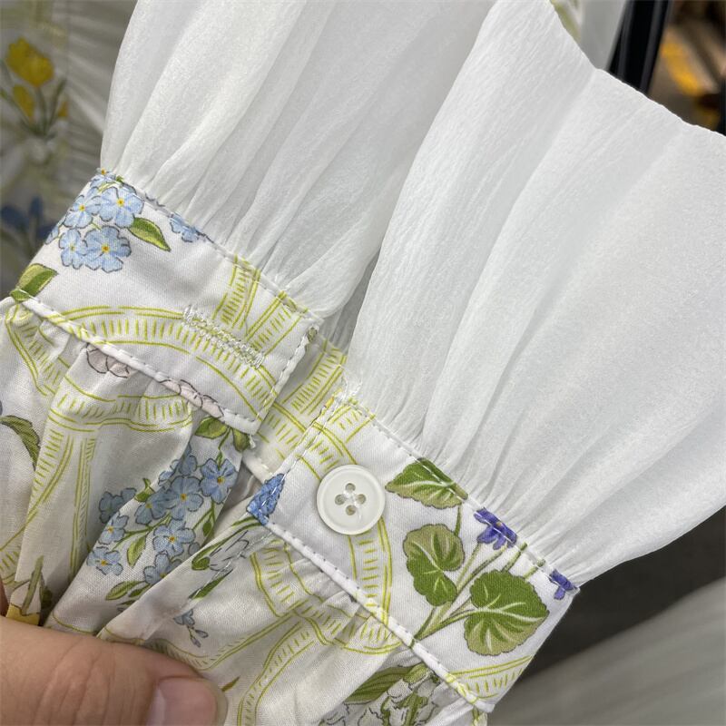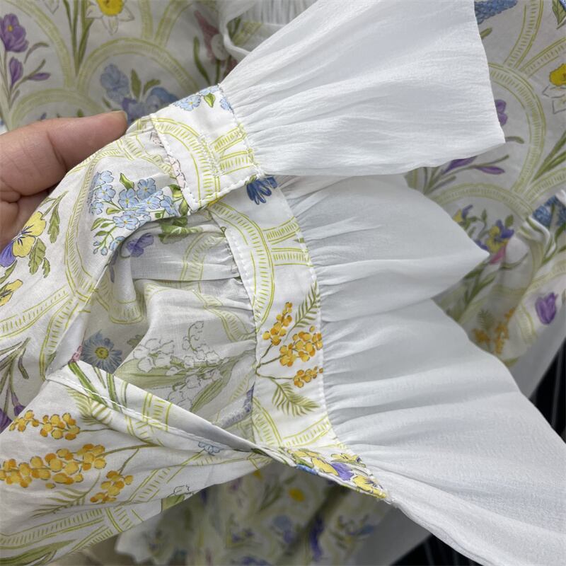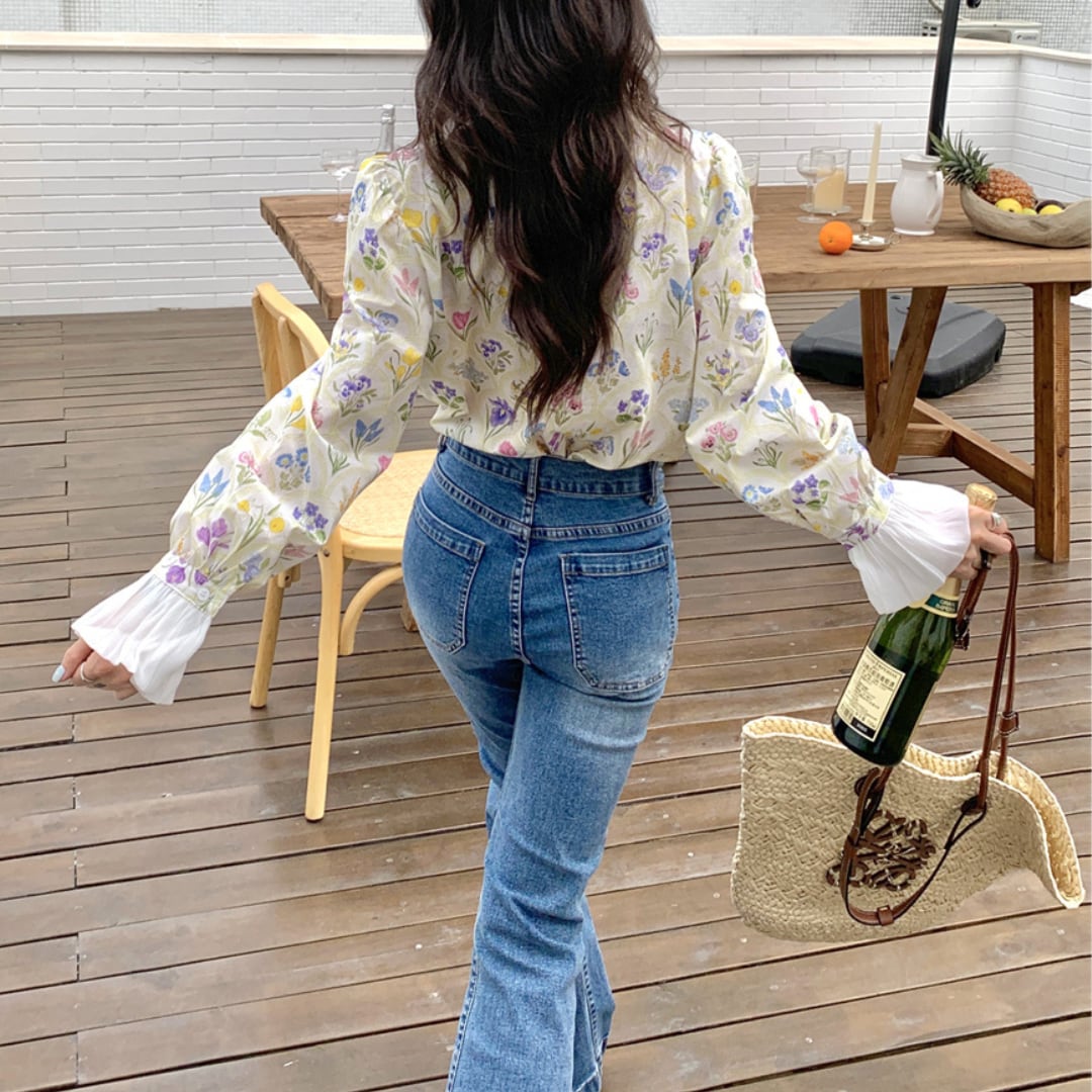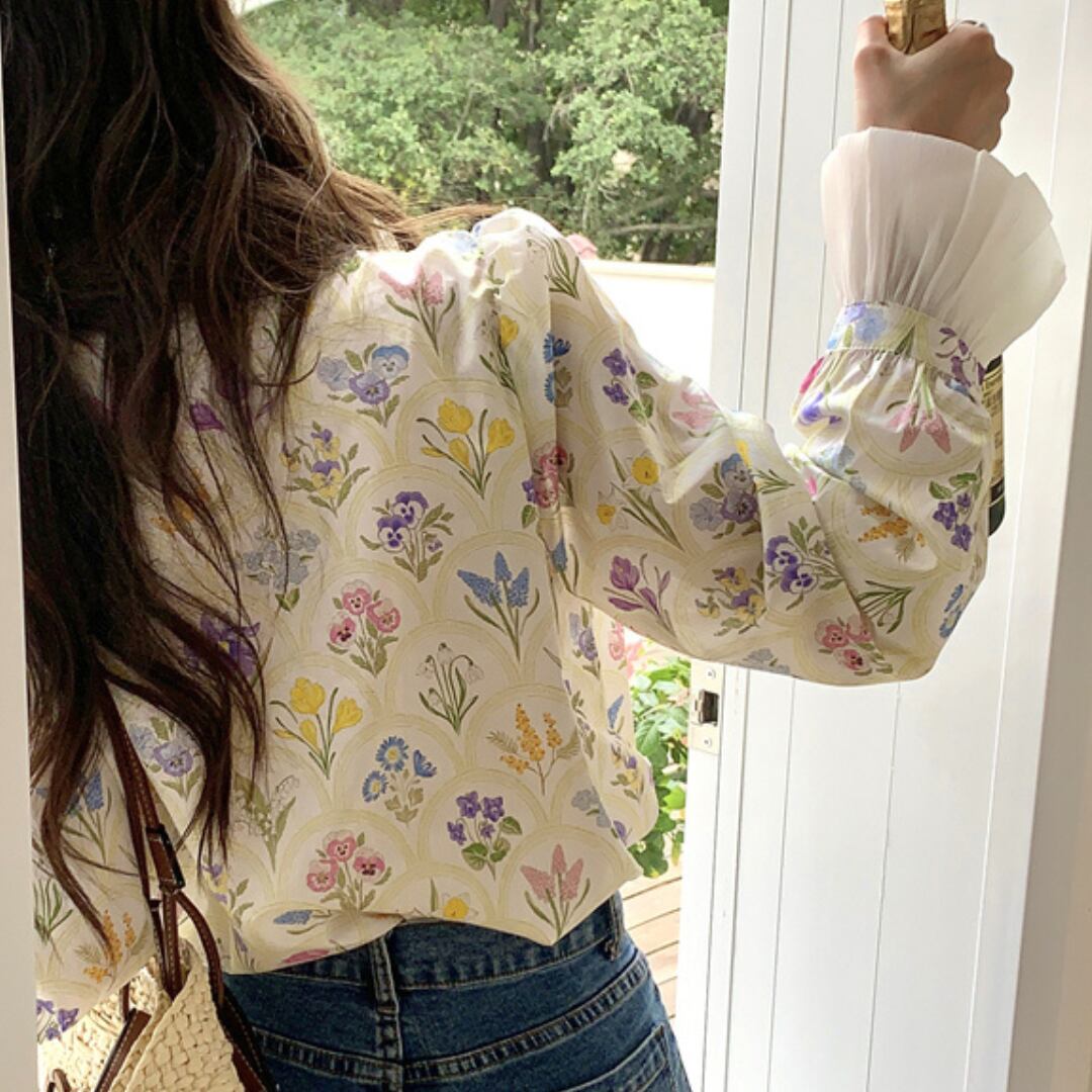 フリルフラワーシャツ トランペットスリーブ ベルスリーブ S0133