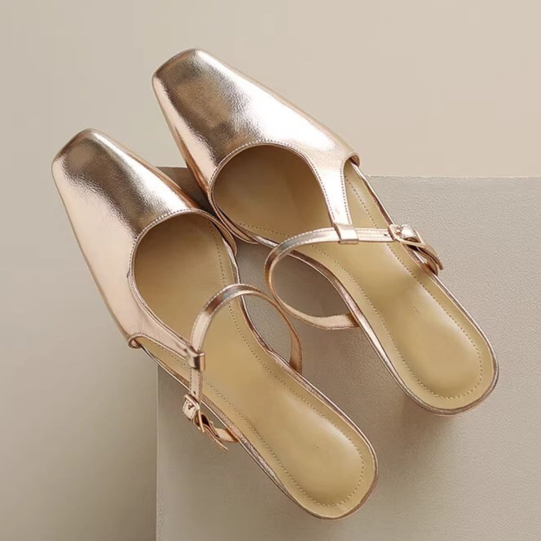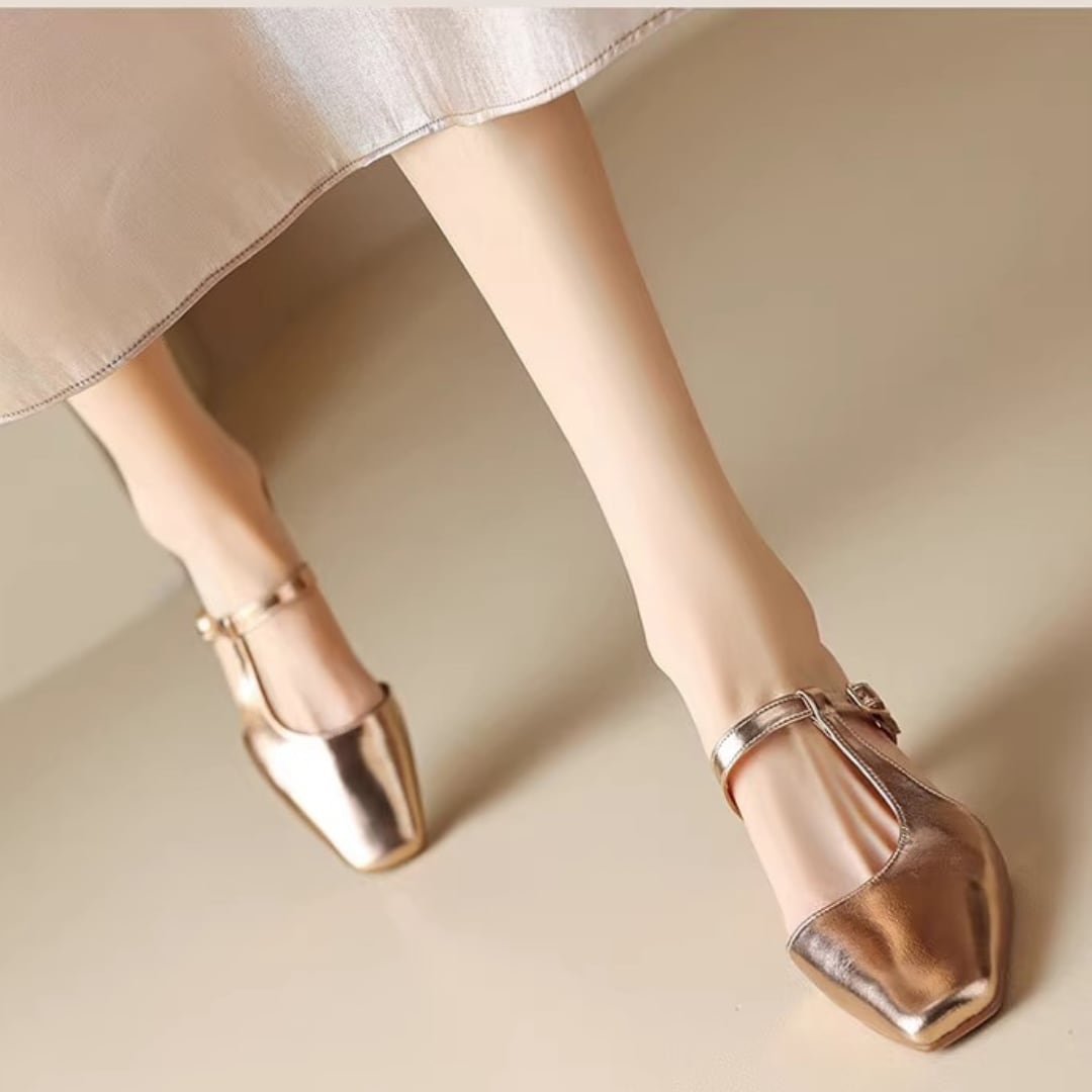 トレンド感漂う、スクエアトゥデザインが特徴のエレガントなパンプス