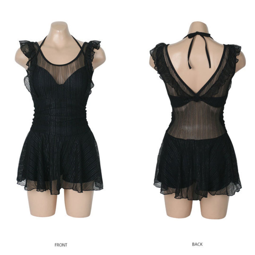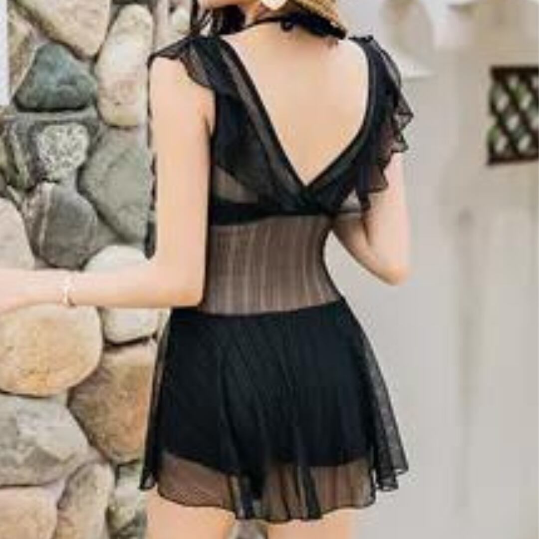 レーススカートワンピース シースルー バックレススイムウェア S0153