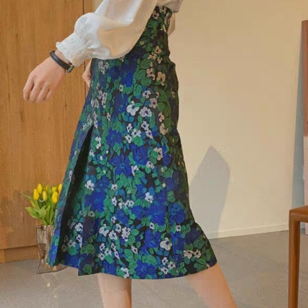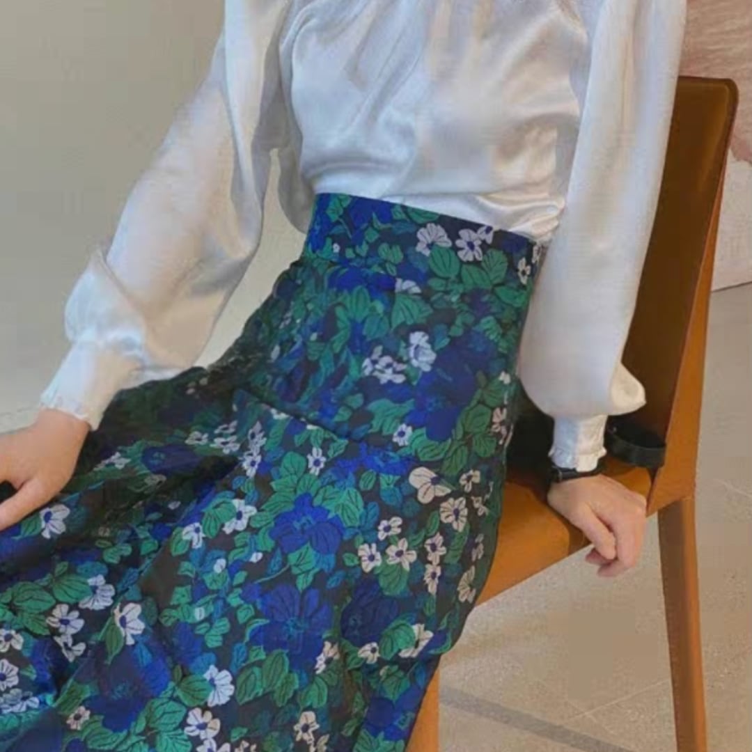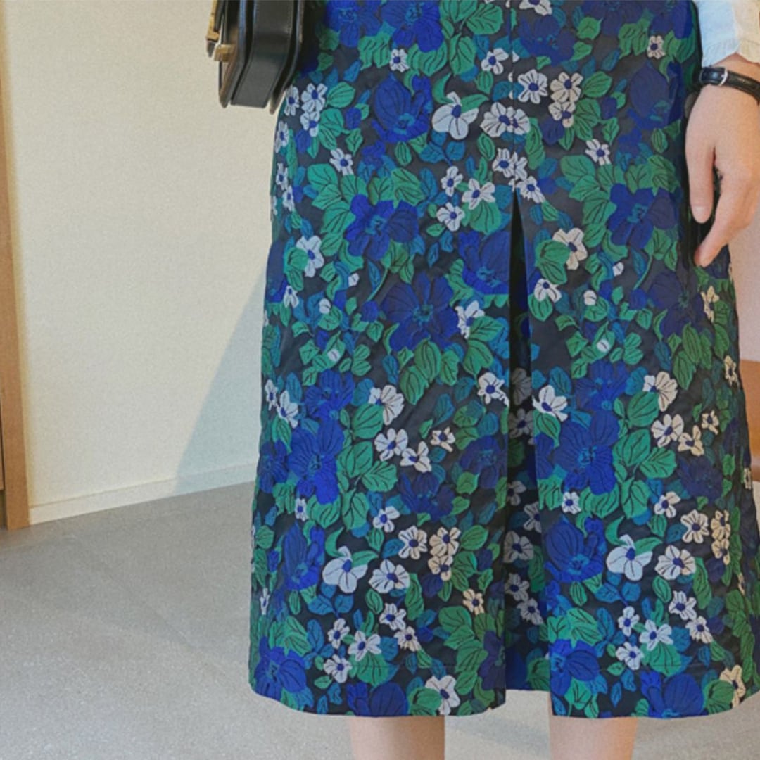 ジャカード織りの美しい花柄が、着こなしに華やかさを添えます。