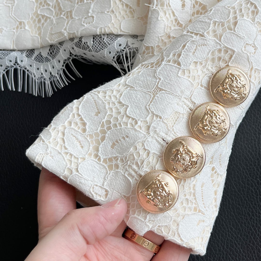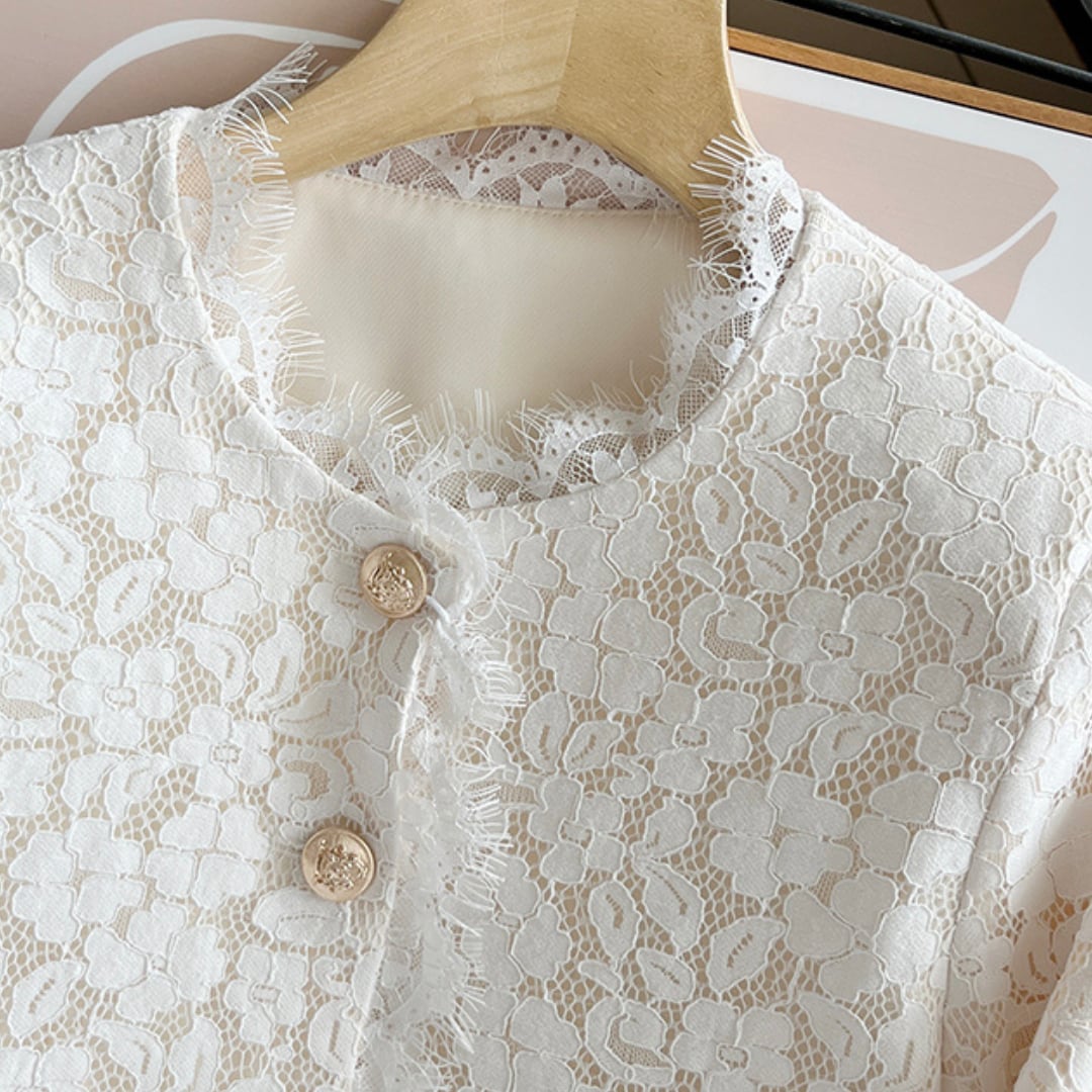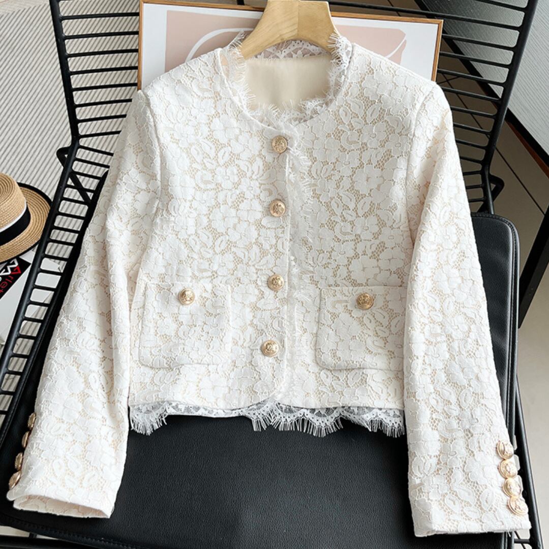 上品なレースが魅力のジャケットは、着るだけで女性らしさを演出します